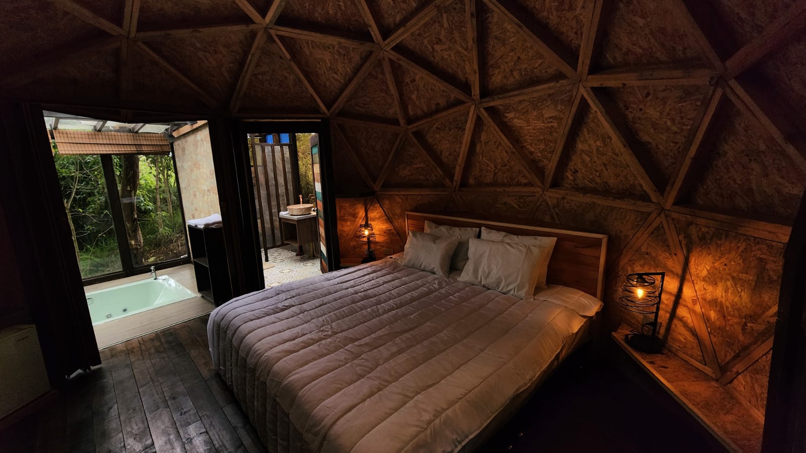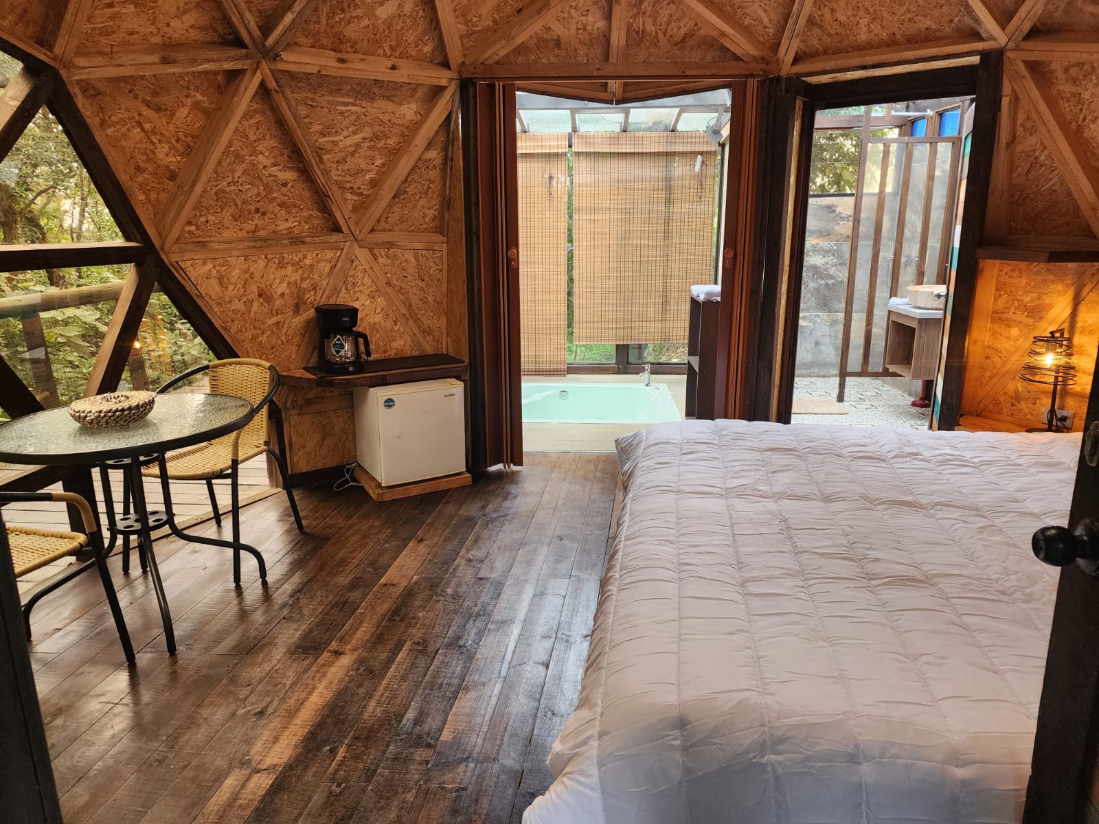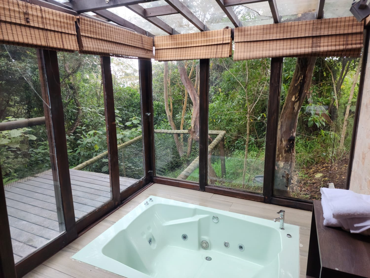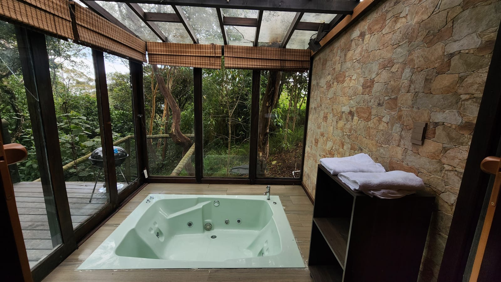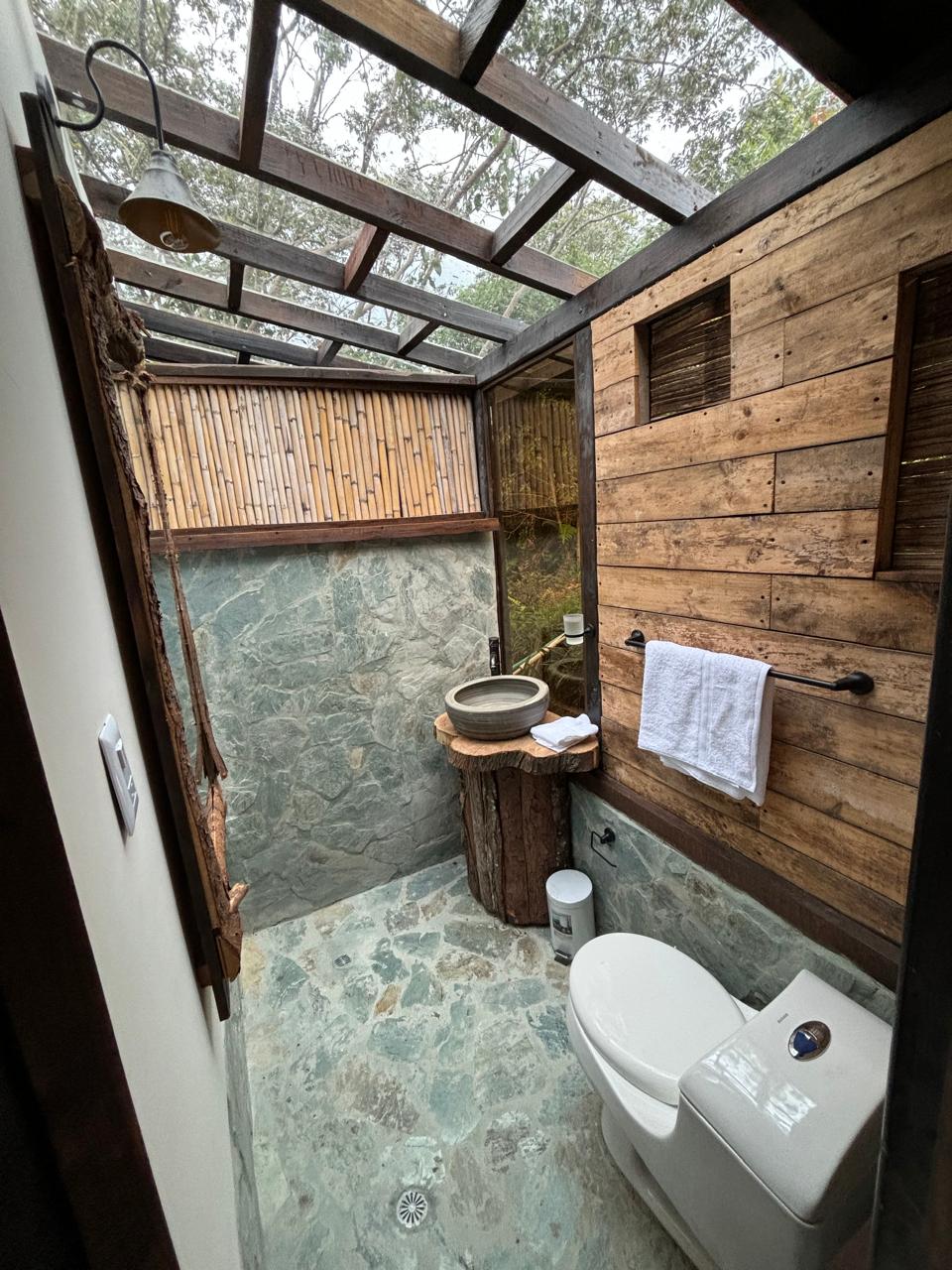 Cuenta con: Malla catamarán, jacuzzi, baño privado, cama queen,Wifi,Pantalla,mini bar,estacion de cafe ,BBQ y parqueadero.